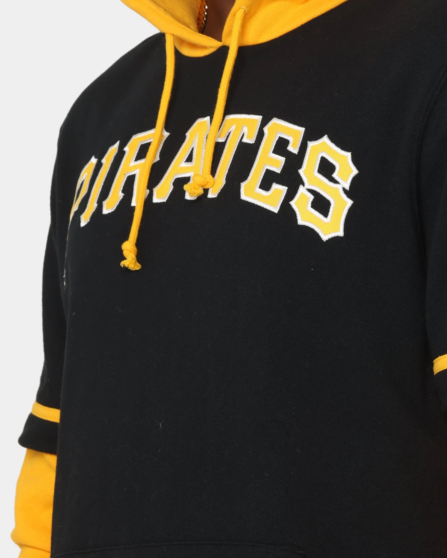 Combine your love of sports and streetwear by copping the Pittsburg Pirates Shortstop Hoodie. This bold hoodie features contrast sleeves and hood, a layered look, and embroidered team logos on the sleeves and chest. Don’t sleep on this iconic hood.