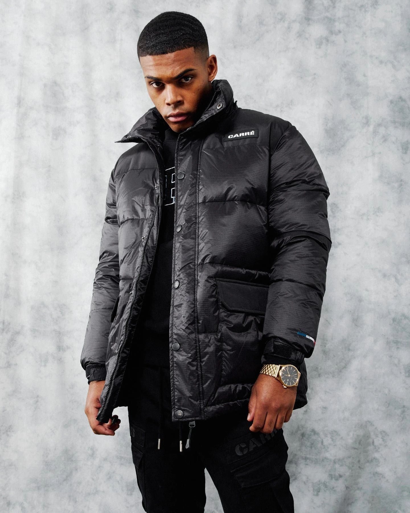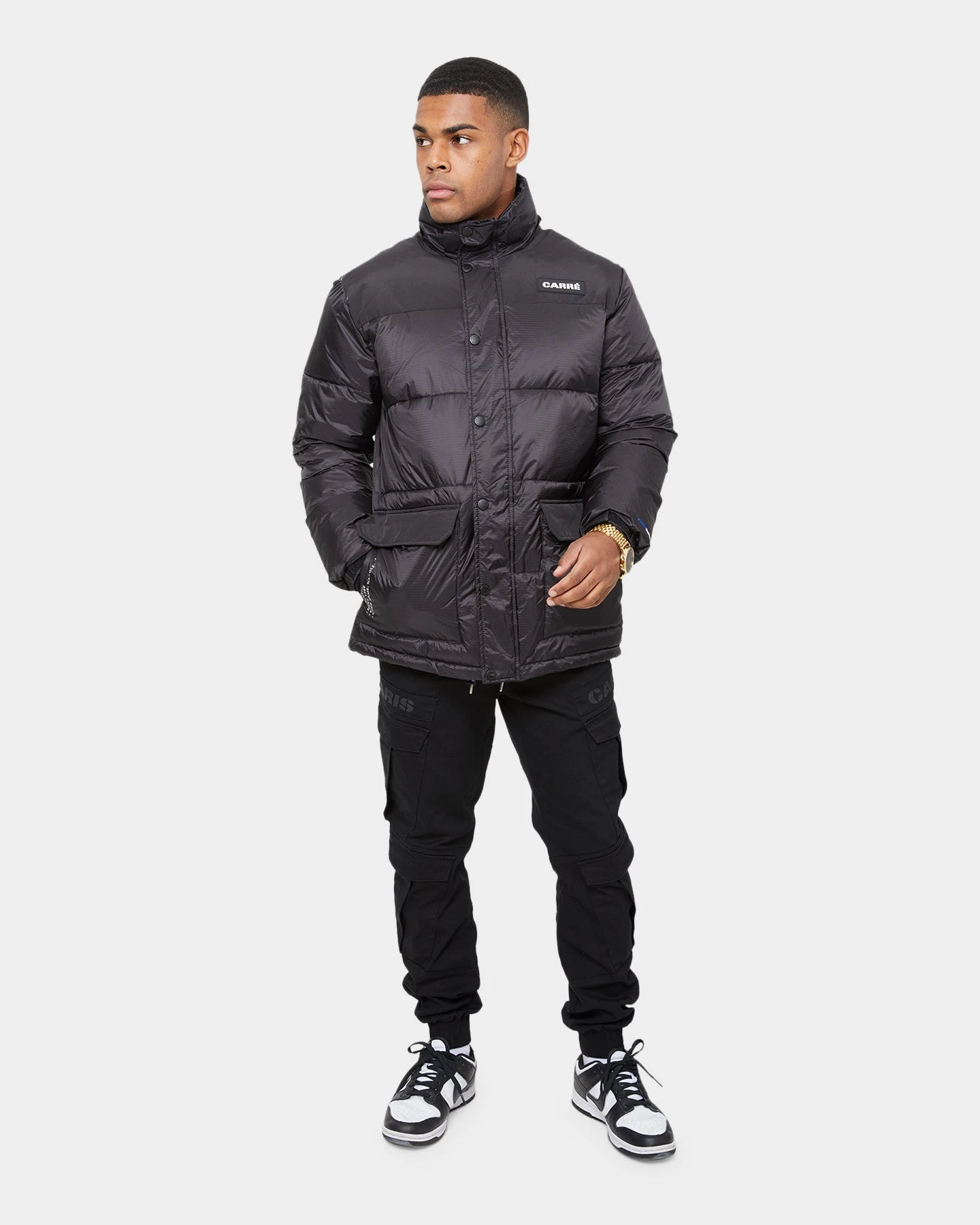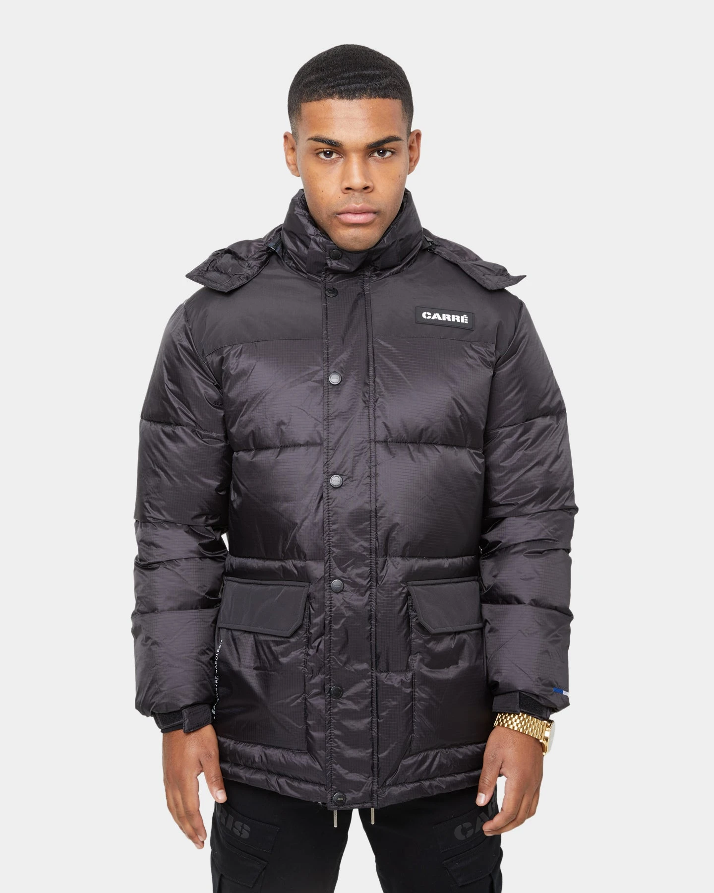 The Roadman Puffer Jacket is a must-have from Carré. With a classic puffer jacket cut and styling, it’s perfect for when the weather is cool out. Features include a full-length front zip, dual slant front pockets with summary flap closure, padded lining, and a removable hood.