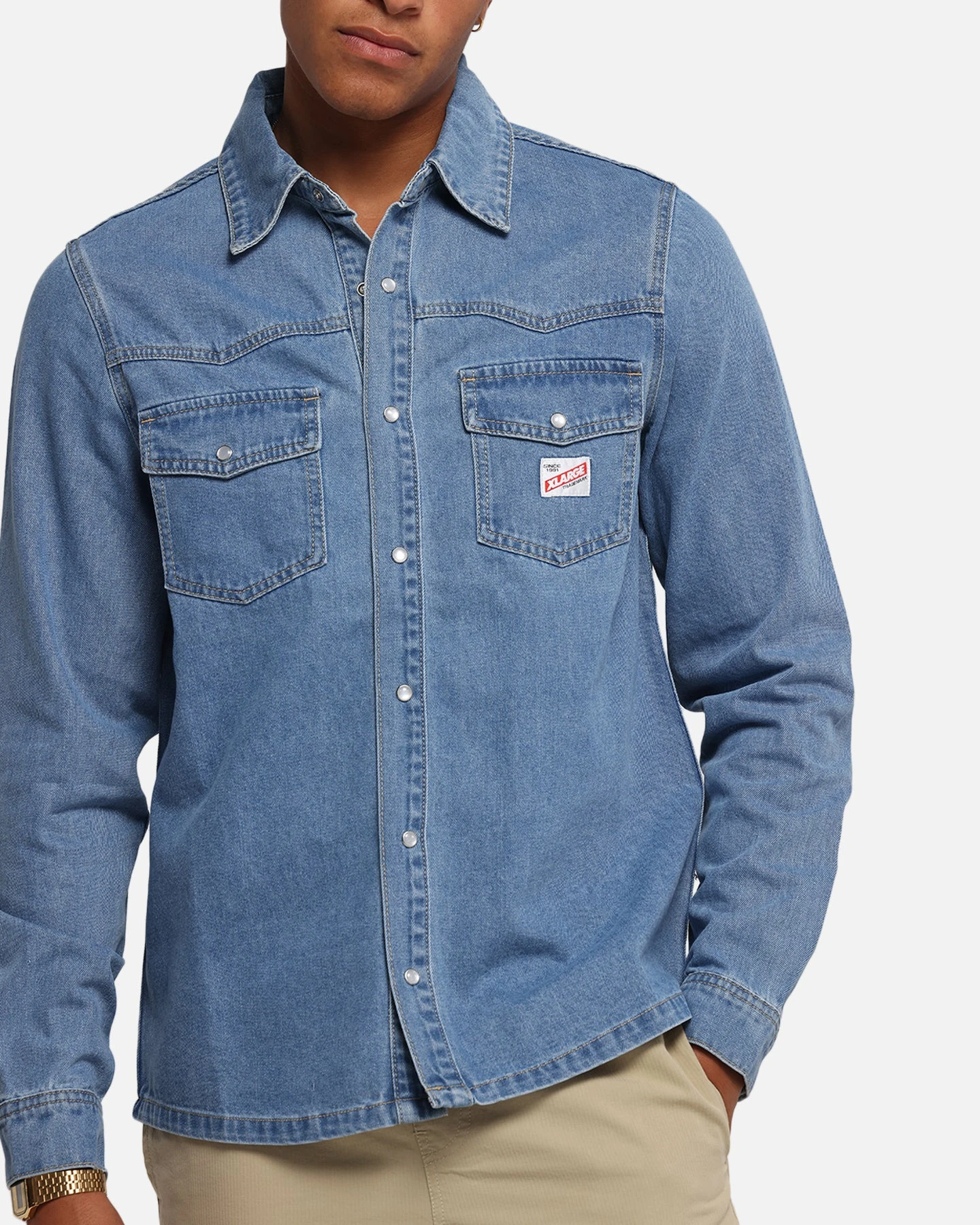 Elevate your style with the Denim Western Long Sleeve Shirt by one of the streetwear goats X-Large. This denim shirt features a woven brand label to the chest with dual chest pockets for all your daily essentials. Finished with contrast stitching and a full summary-up close to customise your look. Cop yours today at Culture Kiings.