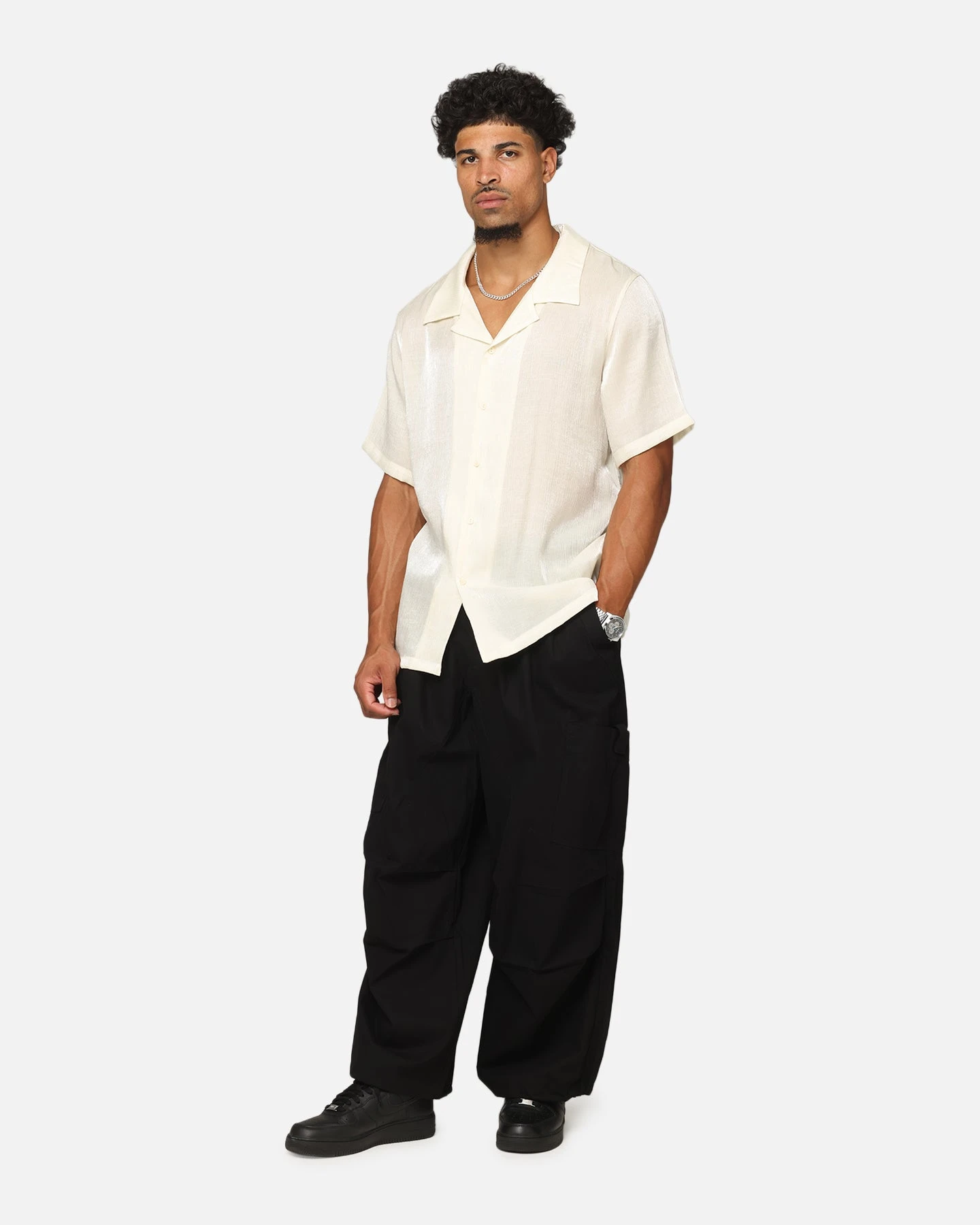 From day to night, the Diamond Button Up Shirt is sure to come in clutch. Featuring an ultra lightweight construction with an all-over subtle shine for a luxury look and feel. The full summary close and collar brings it all together and finishes it off. Grab yours today at Culture Kings.