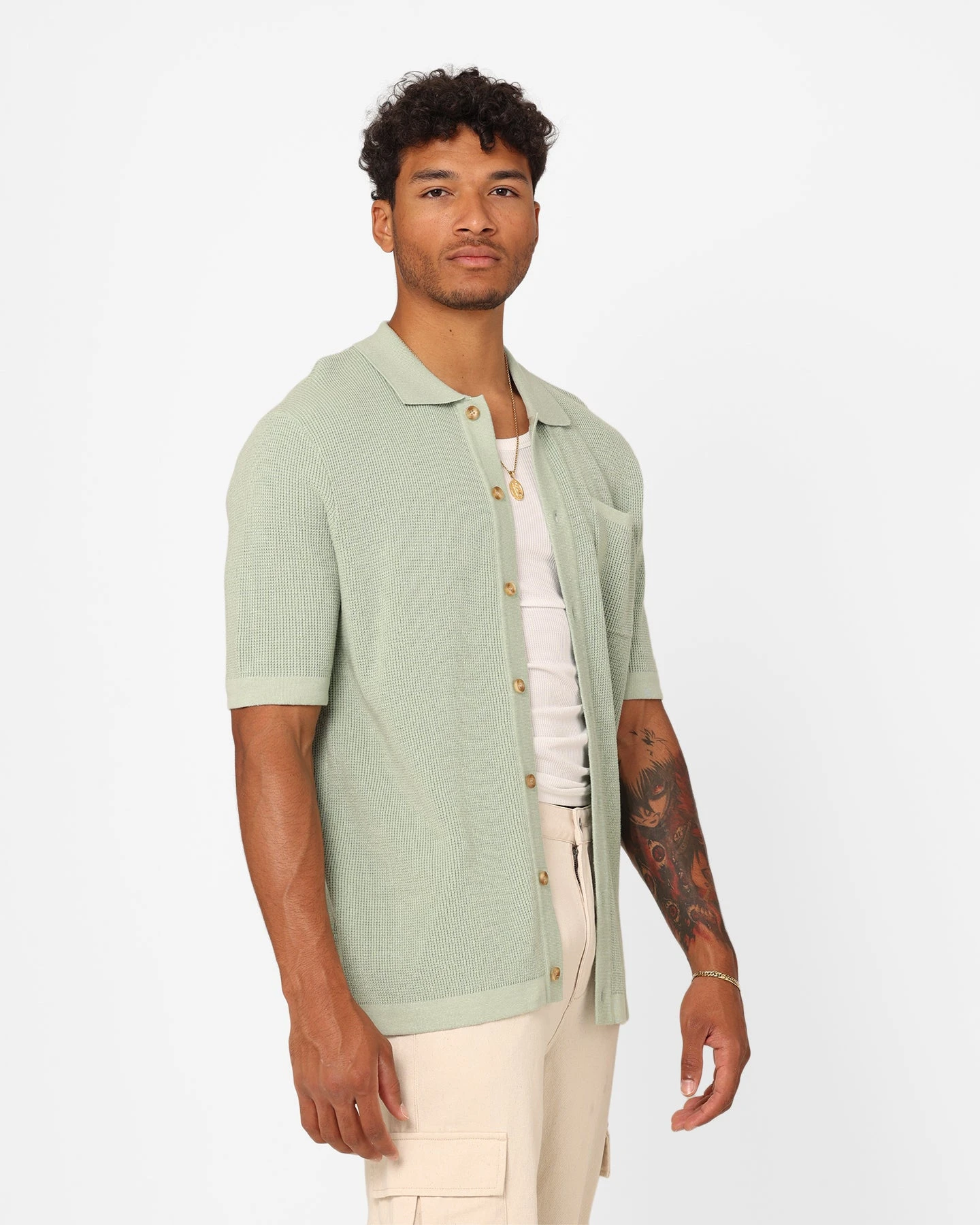 The Zyair Knit Rib Button Up T-Shirt adds some texture to your outfit. This summary-up features short sleeves, a chest pocket, and is constructed with rib-knit fabric for an airy feel. Cop yours today at Culture Kings.